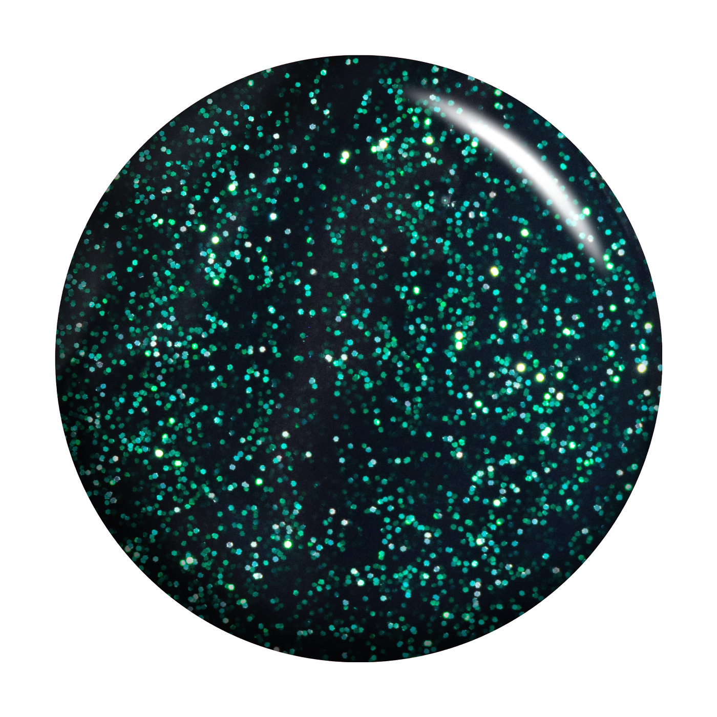 Glitter glistens in the perfect pitch of this deep emerald polish.